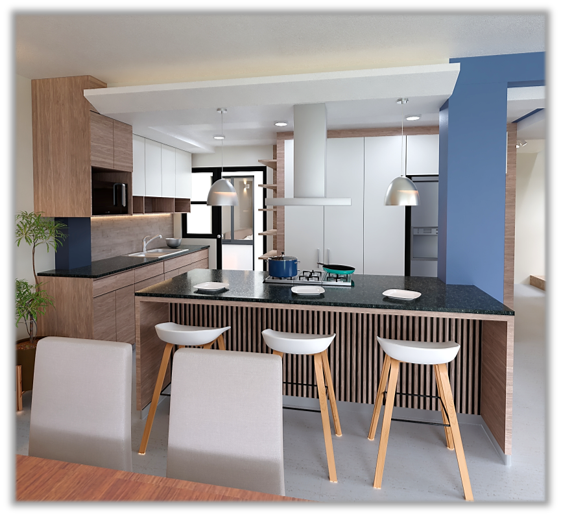 Barra desayunador y parrilla